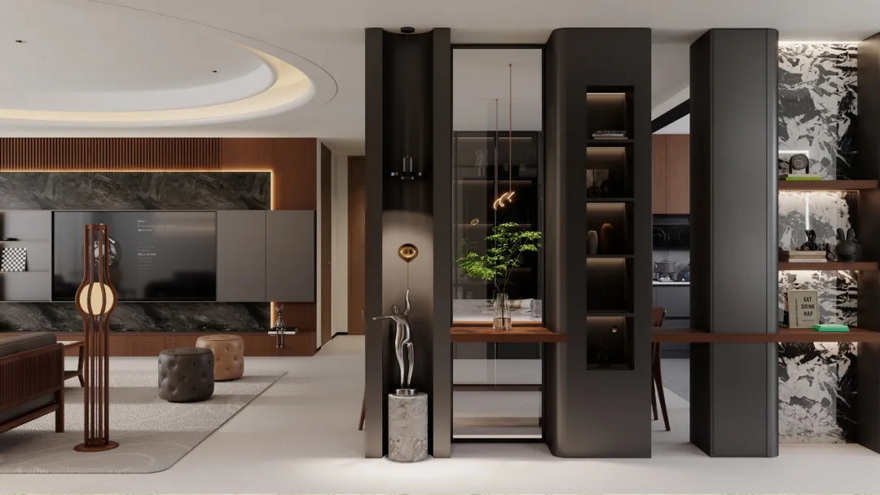 在当代家居美学中,“简约” 与 “质感” 从来不是对立的命题。这套空间以木质的温润为底色,搭配石材的冷冽高级,将现代轻奢的优雅与生活的烟火气巧妙编织,每一处细节都在诉说:家,是能让人卸下疲惫的温柔容器。