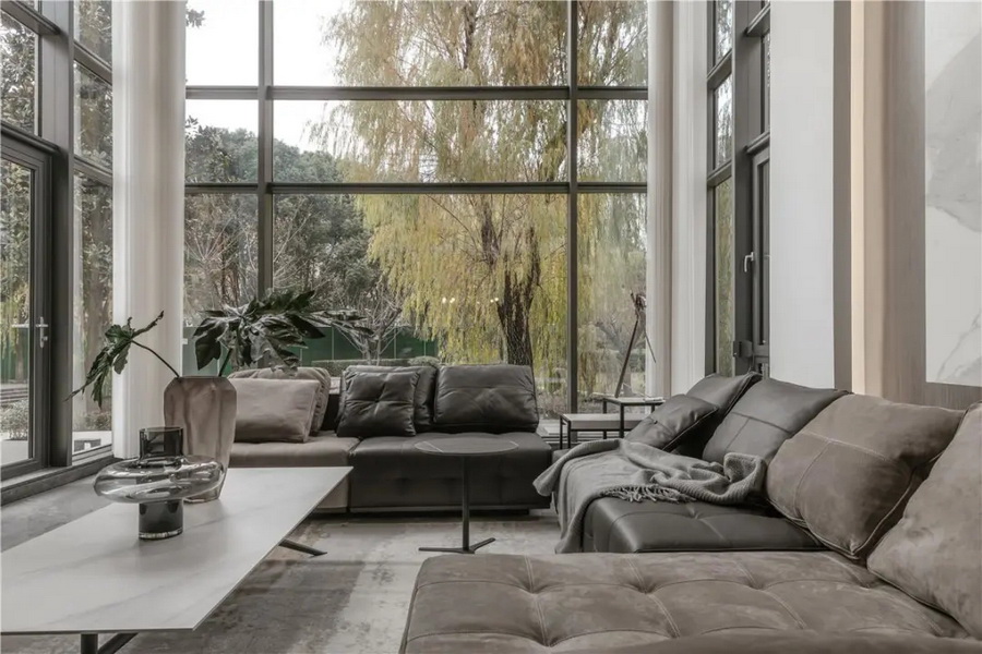 设计怀揣着人文关怀,从窗户照进现实,串联起人与世界,将流金岁月淌进居住者的心中。借由挑高的空间,落地窗囊括了窗外更大的天地、更广阔的风景。窗的通明,可以洗涤心灵,为灵魂的陶冶与修养,创造一席更加洁净的世界。
