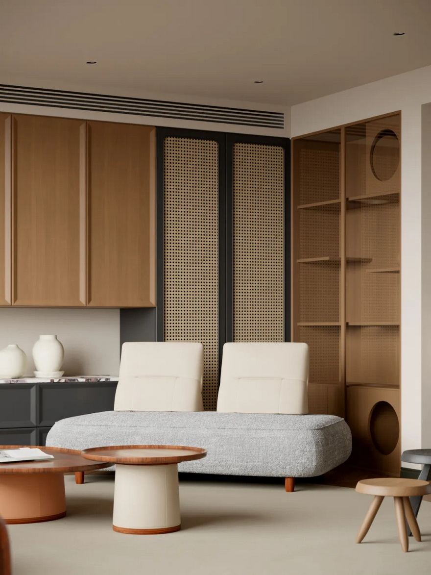 当复古的优雅以现代的语法重新诠释,当自然的质朴与轻奢的精致悄然相拥,这处居所便成了一幅立体的 “混搭” 艺术长卷 —— 每一寸空间都是经纬交织的质感节点,每一处设计都是生活诗意的具象表达。