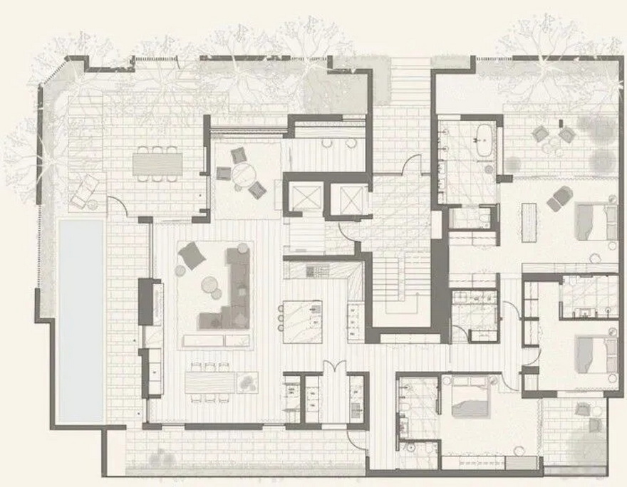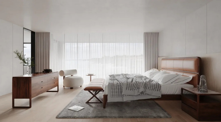 设计师以「扎实的材料哲学」回应当地气候,以「精准的比例与尺度」提升居住的舒适指数。每一处细节都在暗示一种品牌高度:奢华不是堆砌,而是耐久与适度的平衡。