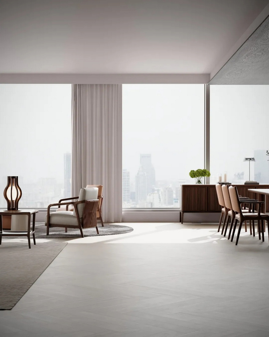 光线是空间温度的关键,我们精研自然光与人工光搭配,让光线与材质、线条互动,赋予空间呼吸感。落地窗引入天光,随时间流转衬显木纹、柔化皮面,为大理石添暖意,让空间鲜活起来