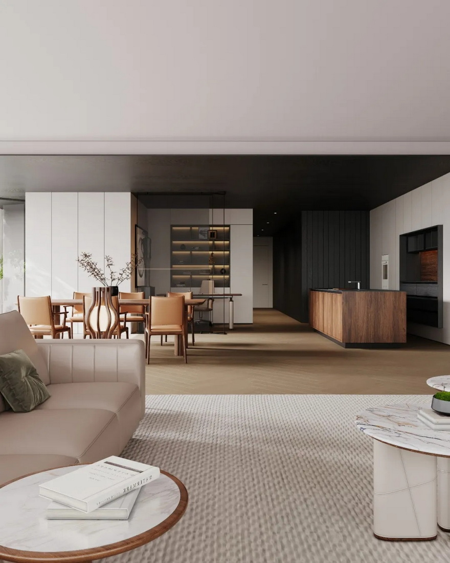 深圳湾顶层豪宅核心是回归人与空间的本质关联,不堆砌潮流、不执着符号,以材质本真、线条克制、光线温度,搭建承载情绪的栖居场域。让极简成为温润生活态度,愿居住者在烟火日常中,触摸美学与实用共生的力量。