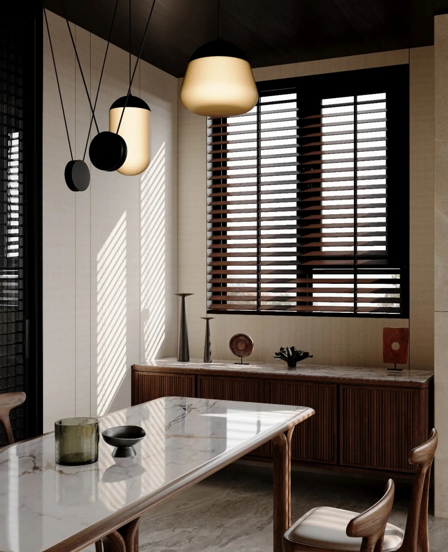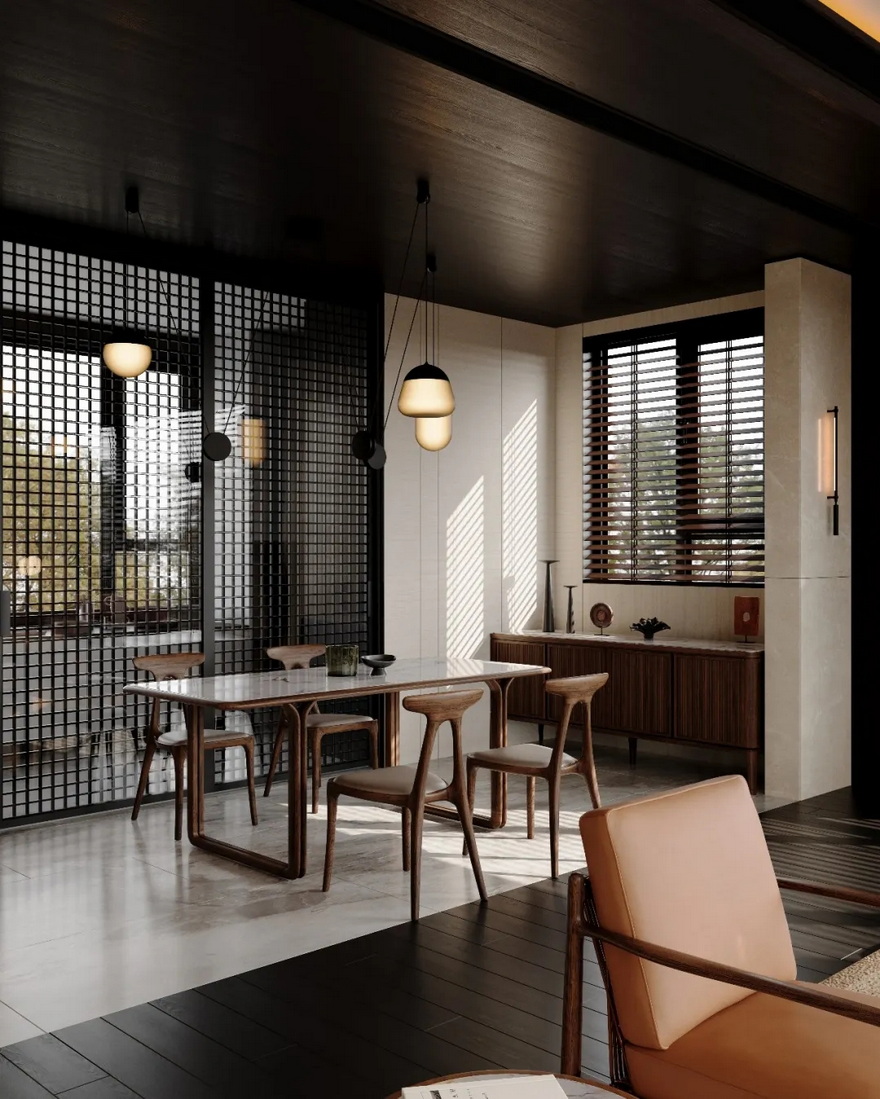 本设计并非对东方美学的复刻,而是对其精神内核的当代诠释。它以材质为骨,以光线为脉,以功能为血肉,构建了一个既符合现代生活需求,又充满东方意境的居住空间。在这里,设计不再是孤立的美学表达,而是一种生活方式的引导 —— 引导人们在快节奏的当代社会中,重新感知自然的温度、光线的韵律,以及生活本身的诗意。