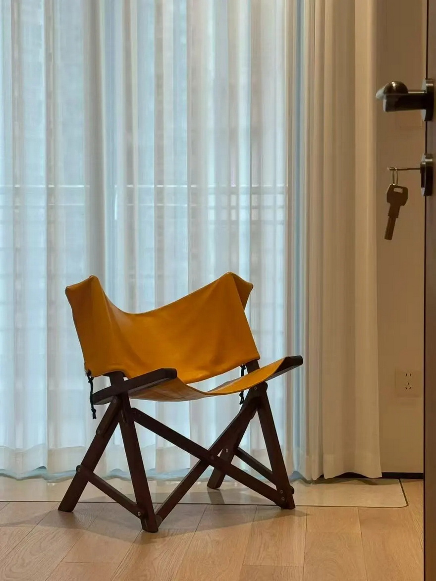 休憩区摆了一套康耐登经典实木休闲椅与边几,框架经手工细细打磨,胡桃木的天然纹理清晰可见,坐上去既有支撑感又舒服。