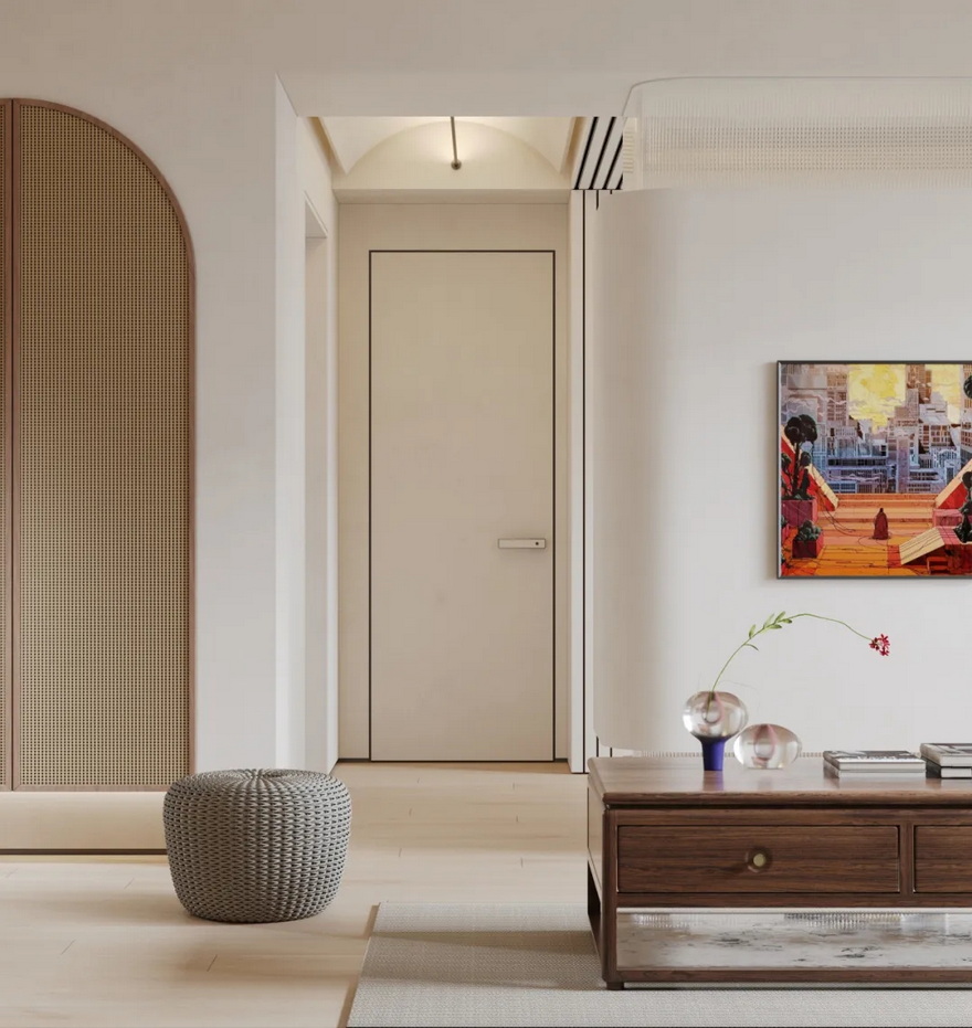 本案业主来自成都,风格定位为胡桃木奶油风,设计师以低饱和度的配色与木质纹理和谐交融,营造舒适的无压空间。