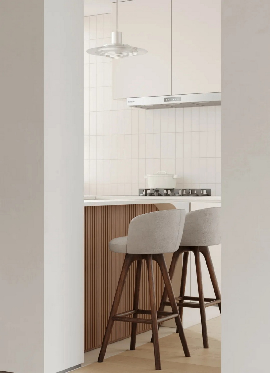 厨房墙体打通后设计成了开放式厨房,由墙体一侧延伸出精巧的小吧台,不仅联动了餐厅与厨房,也弱化了空间的阻隔性。